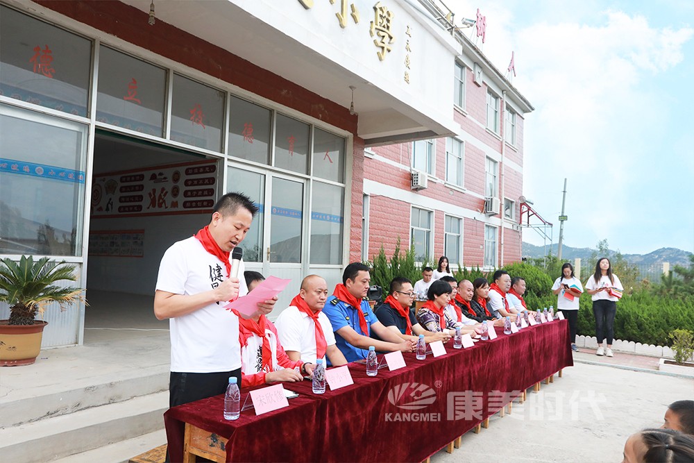 9月19日下午,在山东省泰安市高新区天宝镇前寺村明德小学同步启动“青禾行动”爱心开学日山东分会场活动。泰安高新区天宝镇党委委员孔海清镇长、泰安高新区天宝镇党委委员王玲玲主任、泰安高新区综合行政执法局天宝镇执法大队唐安然大队长、泰安高新区天宝镇前寺村支部书记耿顺臣书记、康美时代全国市场发展委委员宋欣修及其他康美市场伙伴出席了本次活动。