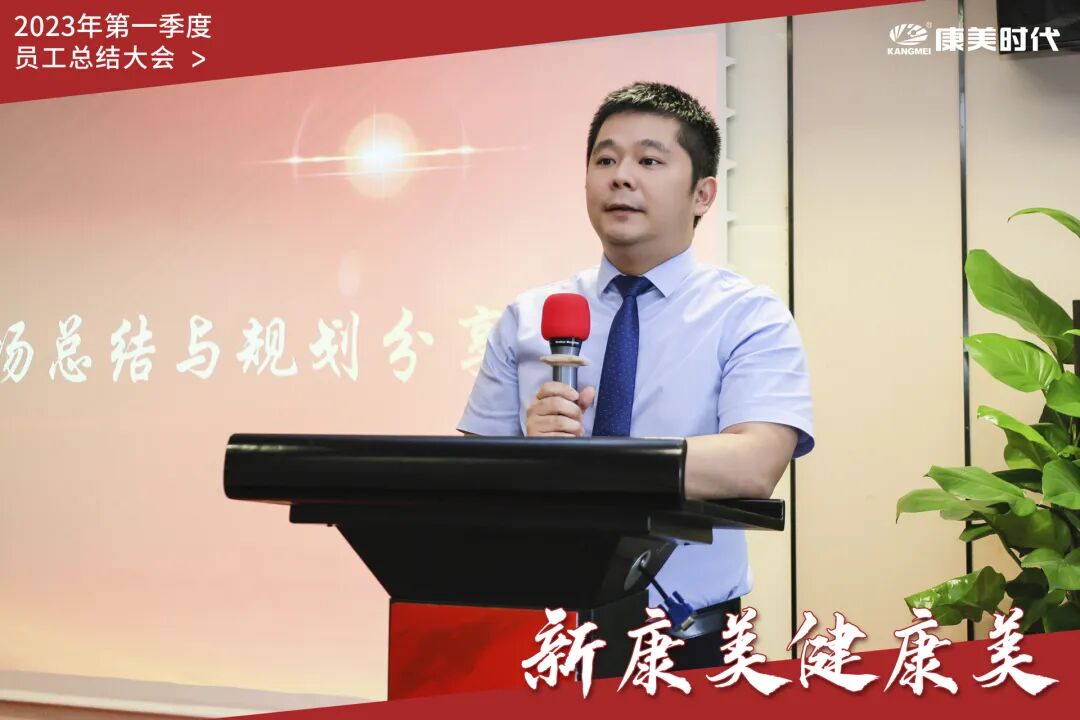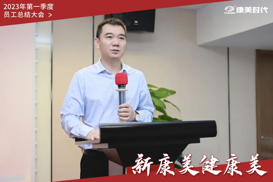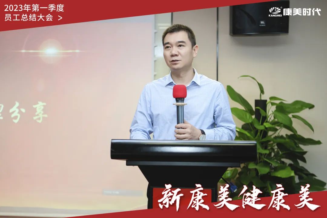 首先,康美时代执行董事、总经理朱庆华先生分享了集团第一季度的经营发展状况,并带来激动人心的利好消息,朱总表示今年是集团开启高质量发展新纪元、具有里程碑意义的关键一年,鼓励大家要坚定信心、卯足干劲,全力书写高质量发展新答卷。