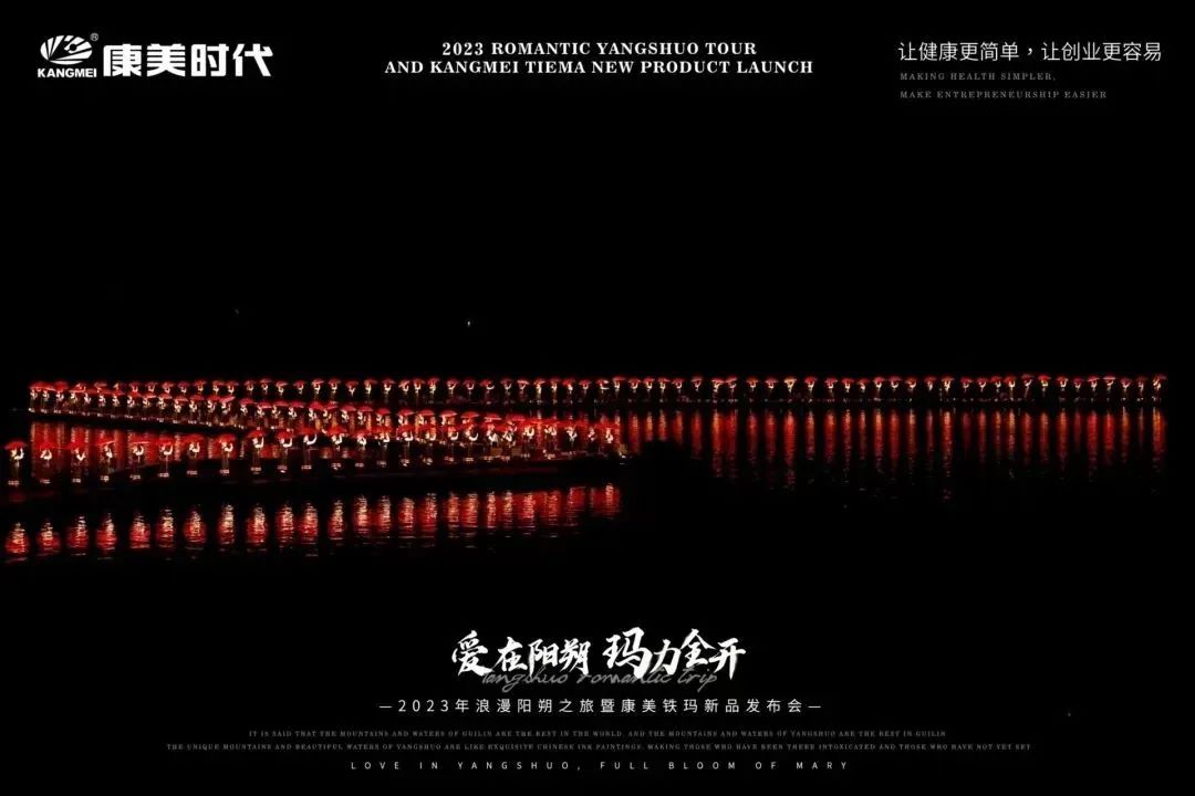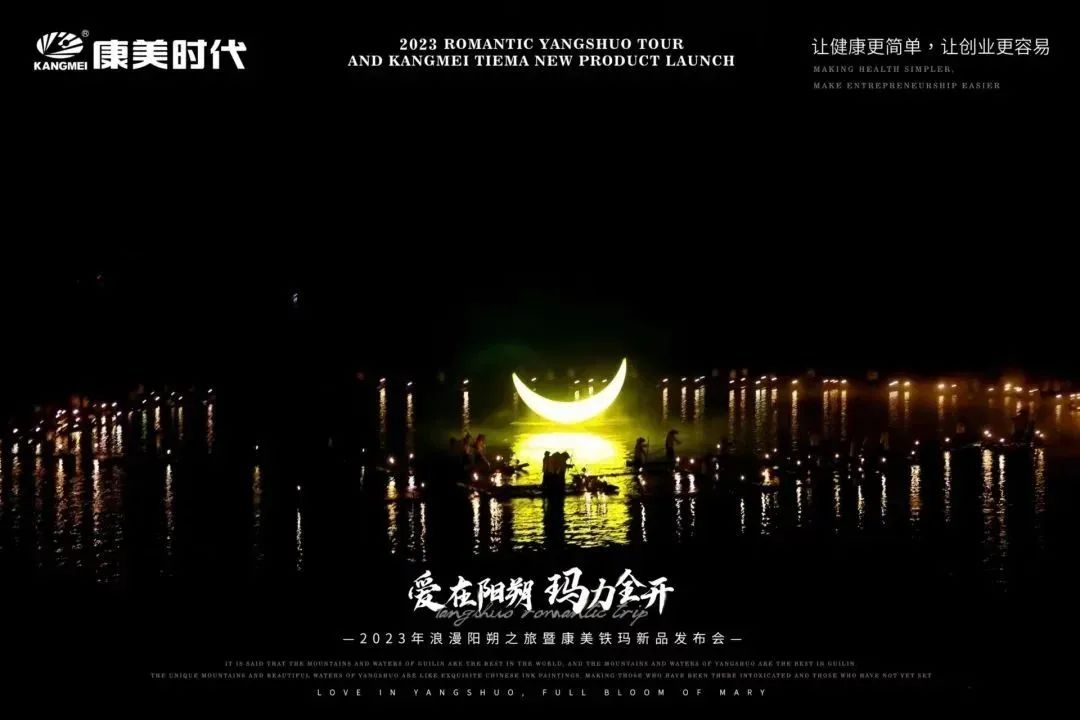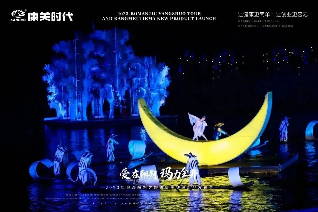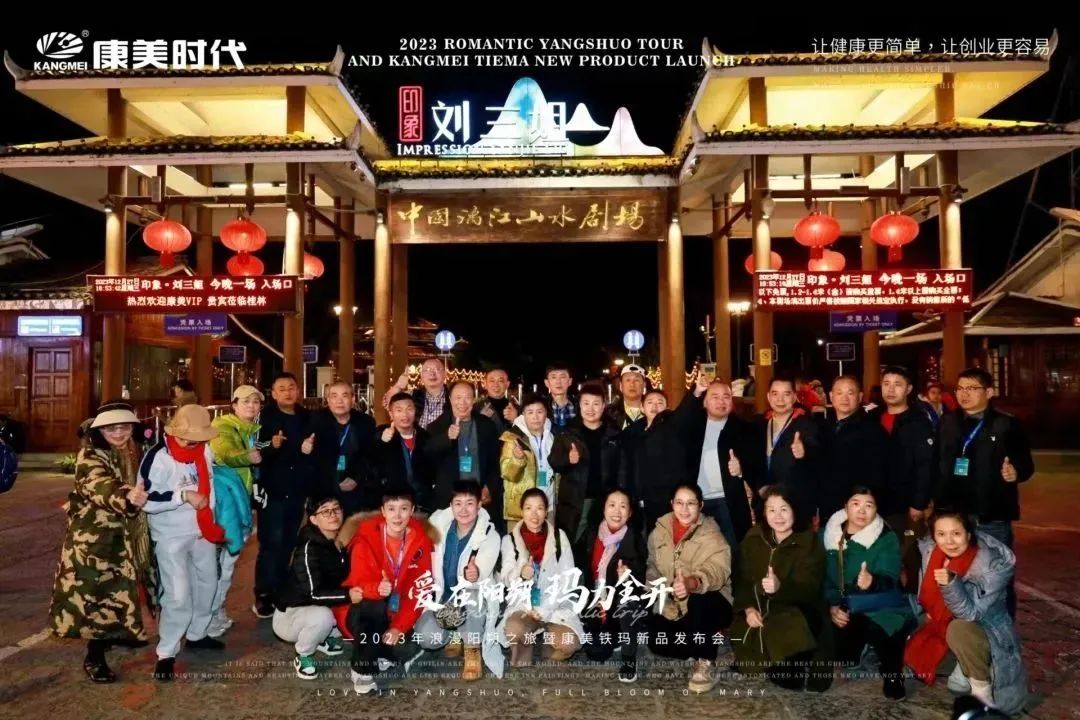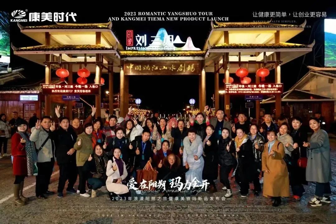 旅途多姿多彩,惊喜不断,欢乐享不停! 12月27日,康美时代2023年浪漫阳朔之旅活动火热持续中!跟随康美的步伐,一众康美家人解锁了游玩新体验:赏美如画卷的十里画廊、游如诗如画的湖光山色、看大型震撼的实景演出!下面,让我们一起见证这些精彩瞬间: 打卡月亮山, 惊叹大自然的神奇 阳朔十里画廊,以“一步一景,漫步画境”闻名,其风光旖旎,让每一个到过的人流连忘返!12月27日下午,跟随康美的步伐,康美家人们打卡了位于十里画廊的月亮山! 在这里,大家不仅看到了秀美风光,还被一座50米高、酷似月亮的奇特山峰所吸引!惊叹于大自然的神奇魅力,康美家人纷纷忍不住合影留念。 走进《康美之恋》拍摄地, 重走康美路 一首央视广告歌曲《康美之恋》广为流传,这是康美斥资300万制作的广告片,其一直被模仿,但从未被超越!跟随康美出游,康美家人走进了《康美之恋》广告片拍摄地-世外桃源,重走康美路,重温康美情! 《康美之恋》传达了康美对健康和美好生活的追求,而此次康美带领大家重走康美路,共同享受生活的幸福与美好,期待将这种健康生活方式带给千家万户,真正实现“健康天下,和美万家”! 世外桃源,也是阳朔必游的一处4A级景点,这里湖光山色秀美,屋宇错落,宛若陶渊明笔下“芳草鲜美,落英缤纷”“有良田美池桑竹之属”的桃源画境。在这里,康美家人乘船游览,欣赏了碧水青山的迷人景致,也领略到了少数民族的风土人情。 共赏山水实景演出, 感受文化奇观 12月27日晚上,跟随康美的步伐,康美家人共赏了全国第一部大型的山水实景演出-《印象·刘三姐》。 在这部以山水为景,天空为幕,民俗为歌的表演中,康美家人领略到了少数民族的风俗风情以及漓江周边的百家万象,感受到当地人文生活与自然山水和谐共存的印象。 现场灯光璀璨夺目,音乐震撼人心,烟雾效果独特,整个演出宛如一场视听盛宴,令康美家人大开眼界,也深深打动了在场所有人的心灵。 跟着康美出游 一起游览祖国大好河山 共同探索华夏的千古文明 更有机会提升自己的世界观 这让在场所有人深切感受到了 作为一名康美人的骄傲与自豪 同时,小康也真诚地希望 每一位康美人都能在康美平台实现 身体健康与事业辉煌的双丰收 同时,跟着康美走遍世界,看遍世界 享受事业之外的幸福感 共同创造属于康美人的康美之旅 接下来 本次旅途的重头戏即将开启 一场盛大的新品发布会将隆重举行 届时,现场活动纷呈,福利和惊喜连连 更多精彩内容,小康将持续为您揭晓 敬请期待~