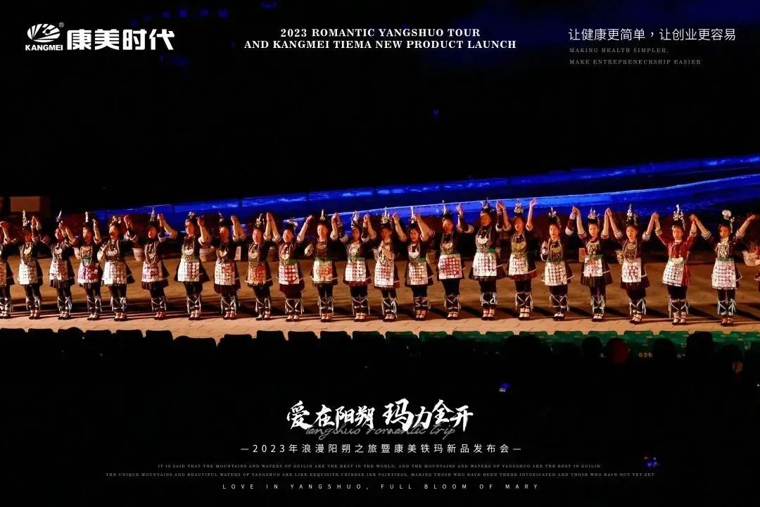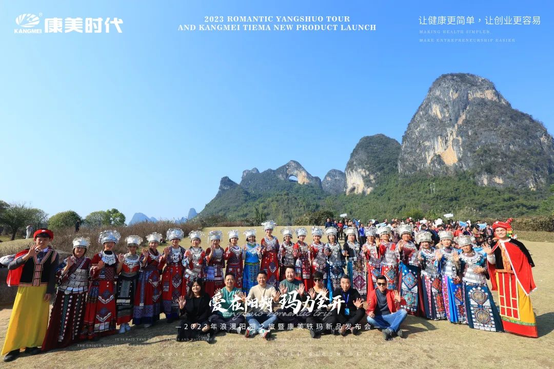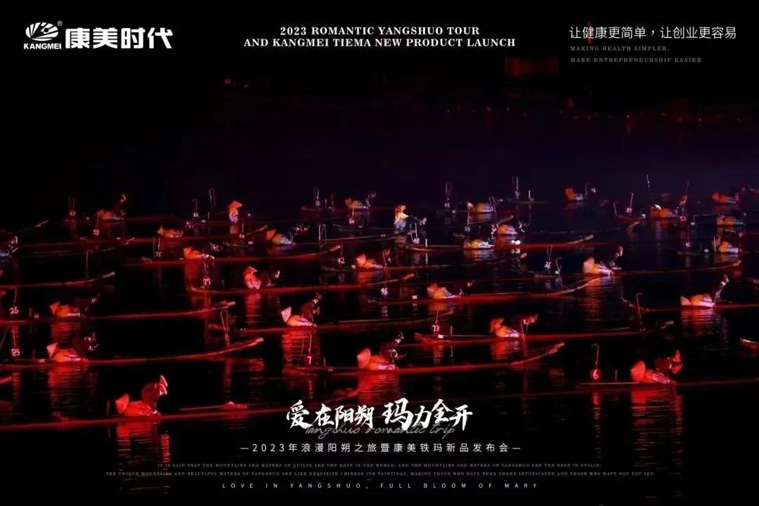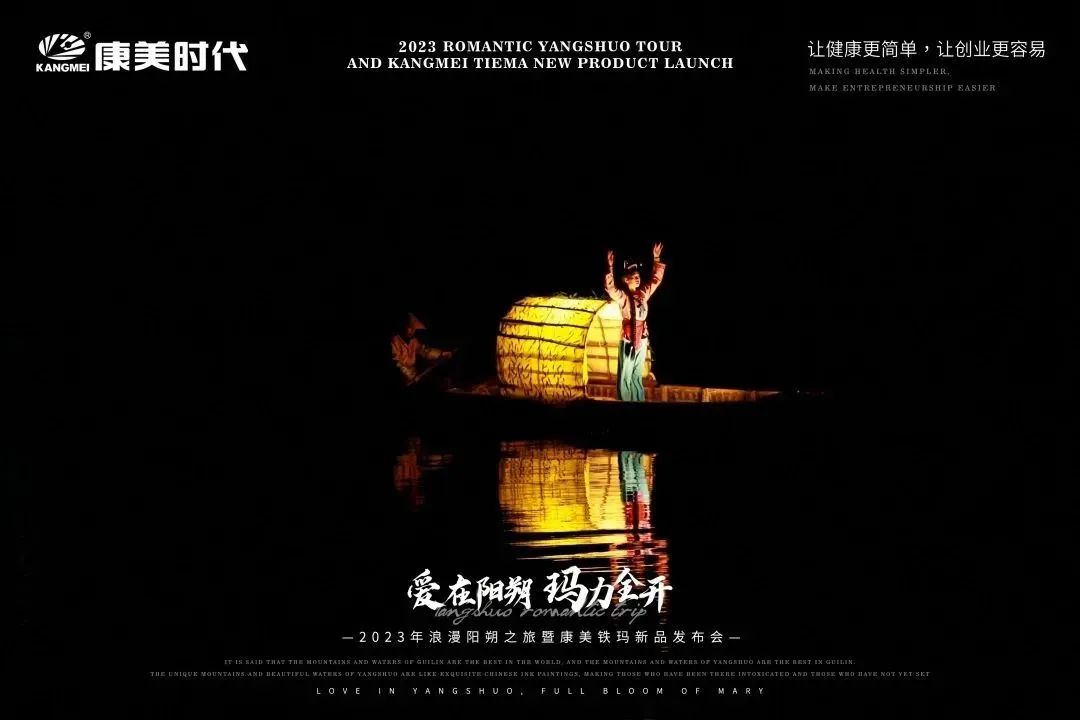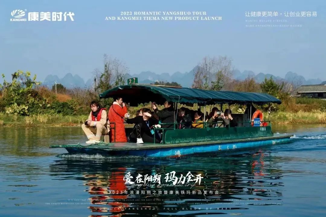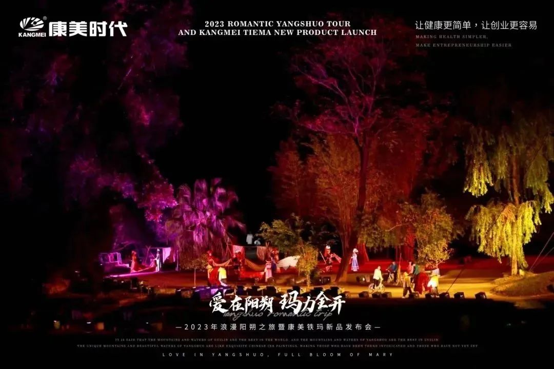 旅途多姿多彩,惊喜不断,欢乐享不停! 12月27日,康美时代2023年浪漫阳朔之旅活动火热持续中!跟随康美的步伐,一众康美家人解锁了游玩新体验:赏美如画卷的十里画廊、游如诗如画的湖光山色、看大型震撼的实景演出!下面,让我们一起见证这些精彩瞬间: 打卡月亮山, 惊叹大自然的神奇 阳朔十里画廊,以“一步一景,漫步画境”闻名,其风光旖旎,让每一个到过的人流连忘返!12月27日下午,跟随康美的步伐,康美家人们打卡了位于十里画廊的月亮山! 在这里,大家不仅看到了秀美风光,还被一座50米高、酷似月亮的奇特山峰所吸引!惊叹于大自然的神奇魅力,康美家人纷纷忍不住合影留念。 走进《康美之恋》拍摄地, 重走康美路 一首央视广告歌曲《康美之恋》广为流传,这是康美斥资300万制作的广告片,其一直被模仿,但从未被超越!跟随康美出游,康美家人走进了《康美之恋》广告片拍摄地-世外桃源,重走康美路,重温康美情! 《康美之恋》传达了康美对健康和美好生活的追求,而此次康美带领大家重走康美路,共同享受生活的幸福与美好,期待将这种健康生活方式带给千家万户,真正实现“健康天下,和美万家”! 世外桃源,也是阳朔必游的一处4A级景点,这里湖光山色秀美,屋宇错落,宛若陶渊明笔下“芳草鲜美,落英缤纷”“有良田美池桑竹之属”的桃源画境。在这里,康美家人乘船游览,欣赏了碧水青山的迷人景致,也领略到了少数民族的风土人情。 共赏山水实景演出, 感受文化奇观 12月27日晚上,跟随康美的步伐,康美家人共赏了全国第一部大型的山水实景演出-《印象·刘三姐》。 在这部以山水为景,天空为幕,民俗为歌的表演中,康美家人领略到了少数民族的风俗风情以及漓江周边的百家万象,感受到当地人文生活与自然山水和谐共存的印象。 现场灯光璀璨夺目,音乐震撼人心,烟雾效果独特,整个演出宛如一场视听盛宴,令康美家人大开眼界,也深深打动了在场所有人的心灵。 跟着康美出游 一起游览祖国大好河山 共同探索华夏的千古文明 更有机会提升自己的世界观 这让在场所有人深切感受到了 作为一名康美人的骄傲与自豪 同时,小康也真诚地希望 每一位康美人都能在康美平台实现 身体健康与事业辉煌的双丰收 同时,跟着康美走遍世界,看遍世界 享受事业之外的幸福感 共同创造属于康美人的康美之旅 接下来 本次旅途的重头戏即将开启 一场盛大的新品发布会将隆重举行 届时,现场活动纷呈,福利和惊喜连连 更多精彩内容,小康将持续为您揭晓 敬请期待~