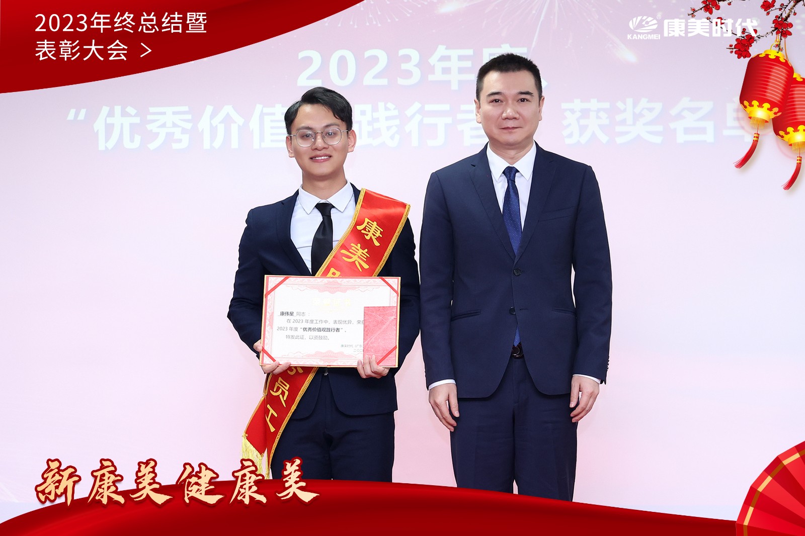 会上,公司对多位“2023年度优秀员工”进行表彰和颁奖,以此嘉奖优秀、树立榜样、鞭策与激励在场的每一位康美家人。